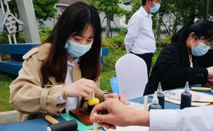 在十里湖塘跨湖桥广场,团员青年积极参与“知章蹴鞠”“苏轼印记”“李白绘酒”“陆游投壶”等活动,体验古代足球运动、花雕彩绘技艺,了解活字印刷技术,感受古人投壶乐趣,在活动中体会了传统工艺魅力,品味到黄酒与诗词交汇的闲雅。