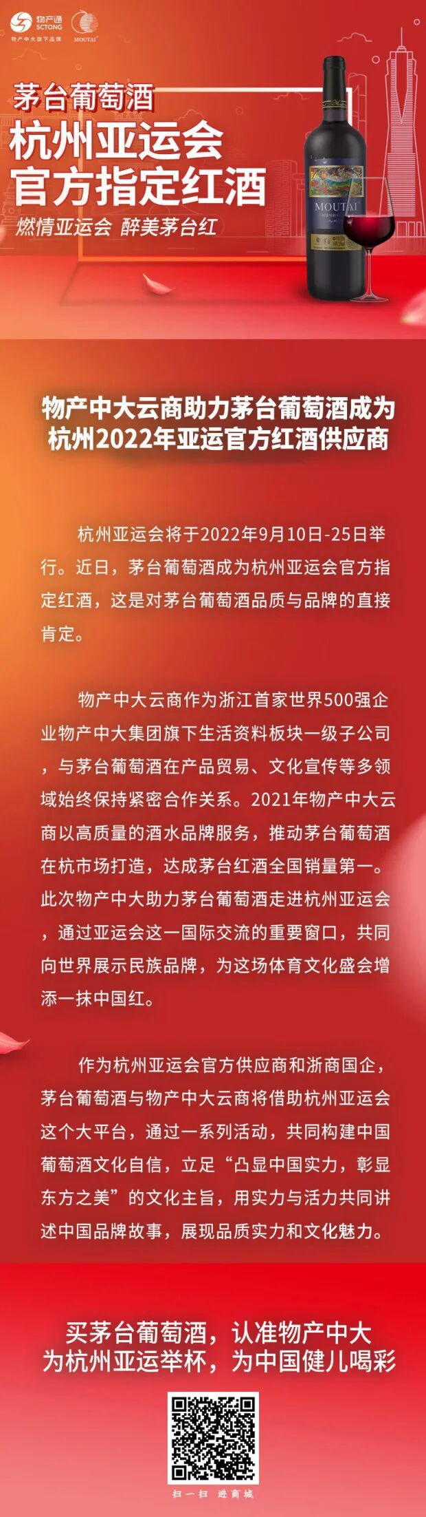 【副会长单位】物产中大云商助力茅台葡萄酒成为杭州2022年亚运官方红酒供应商