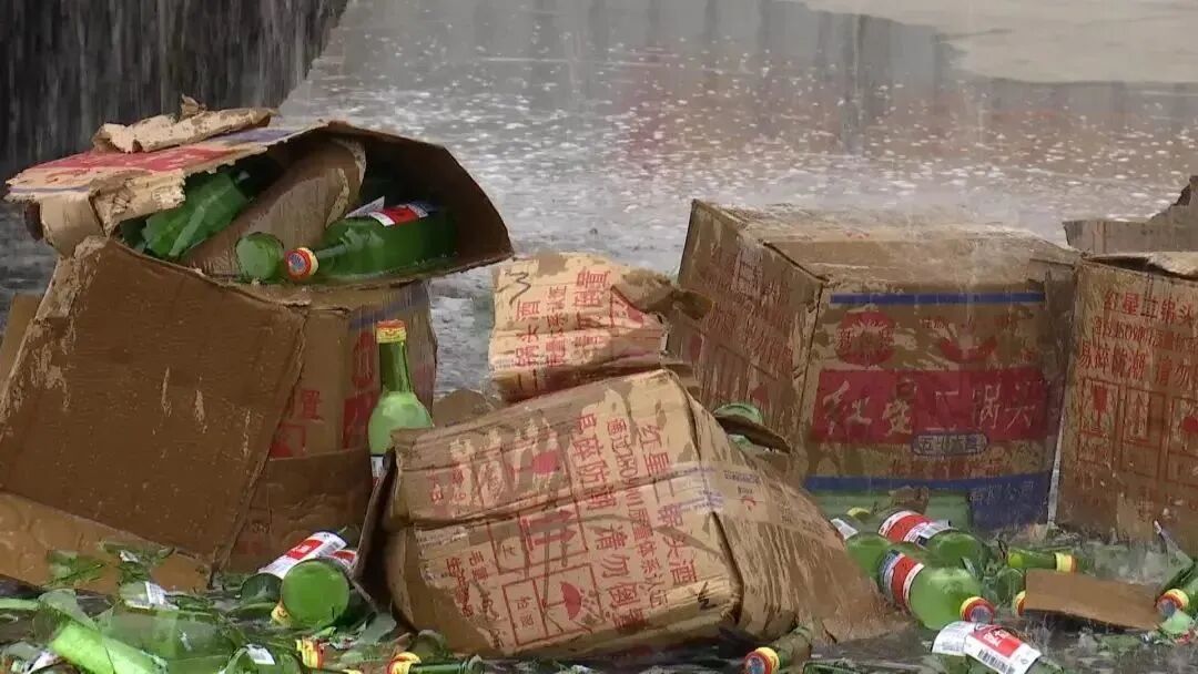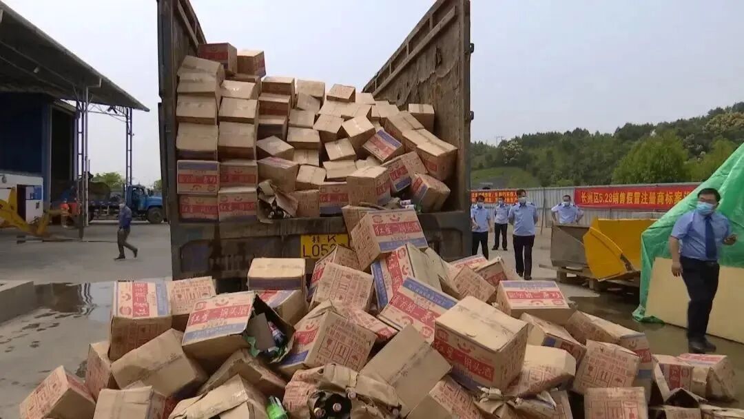 4月15日,在广西梧州市长洲区垃圾集中处理现场,3200多箱,63000多瓶,货值超100万元的假冒伪劣红星二锅头、牛栏山二锅头白酒被集中销毁。