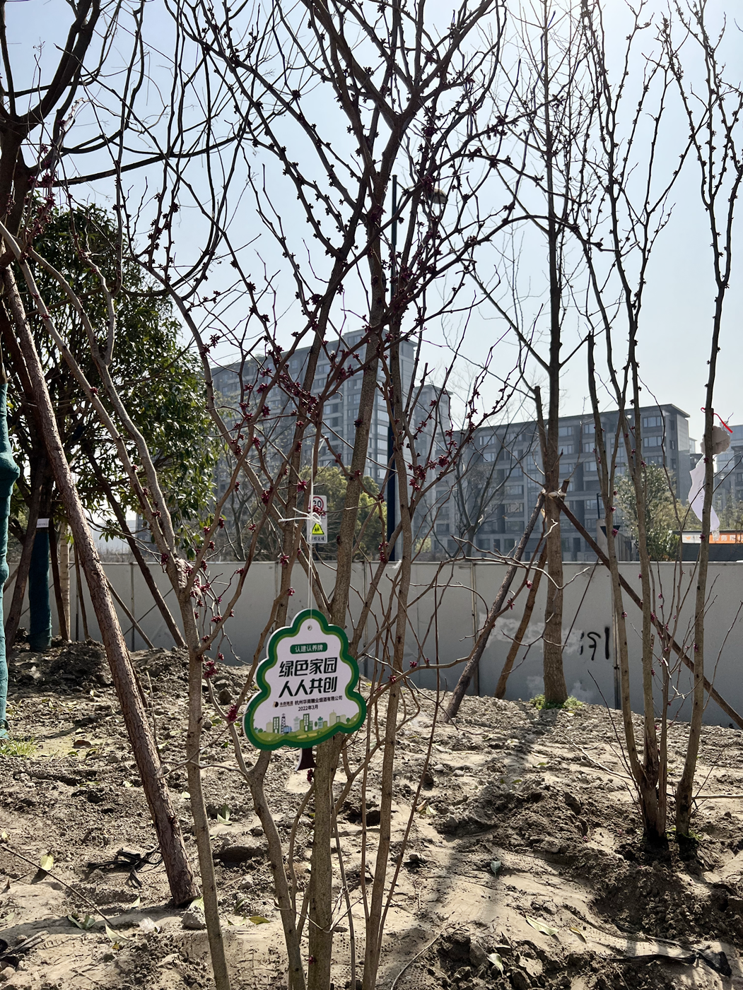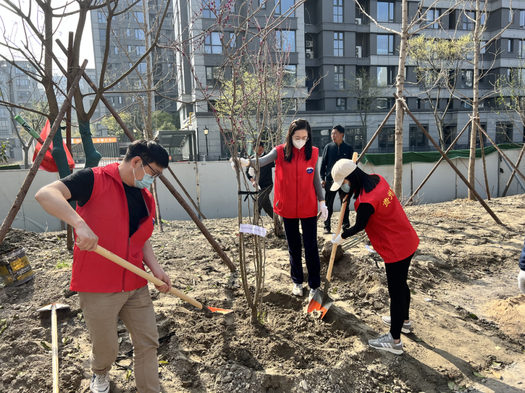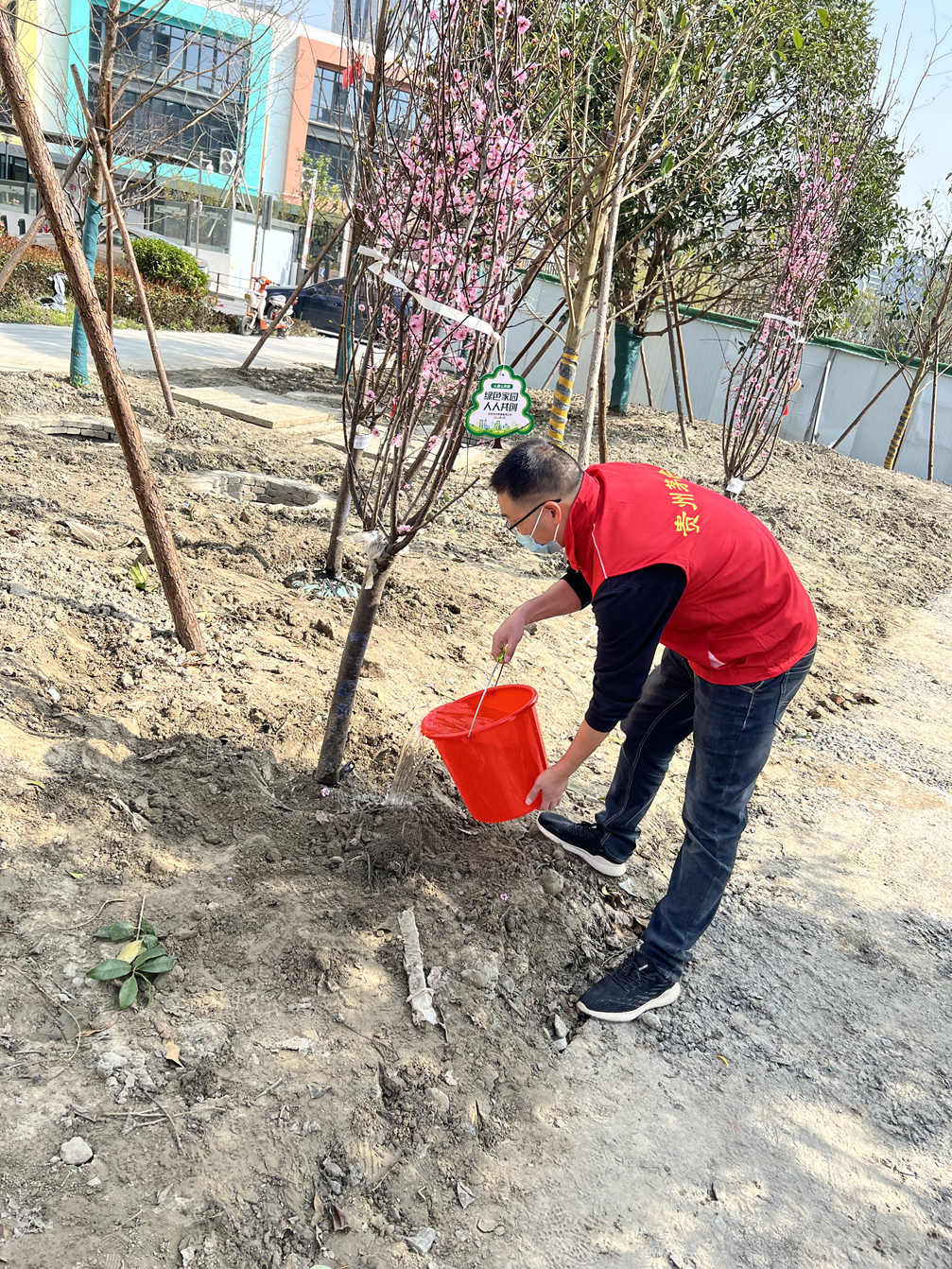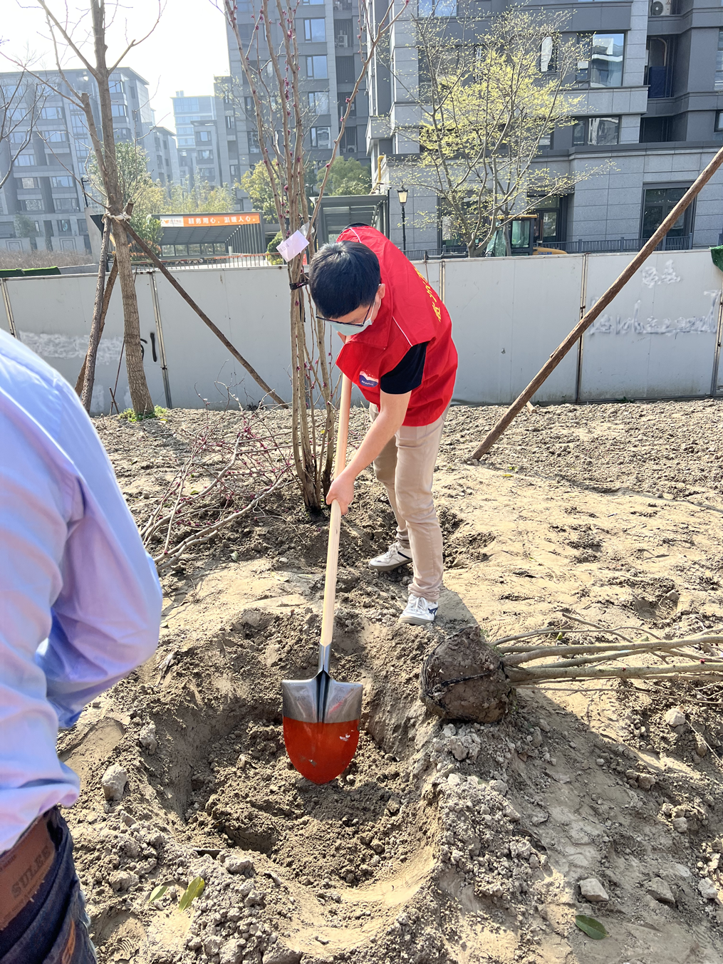 经过一天的辛勤劳作,大家圆满完成了既定植树任务,一棵棵新栽植的美人梅、日本晚樱,迎风挺立,生机勃勃,形成了一道独特亮丽的风景线。