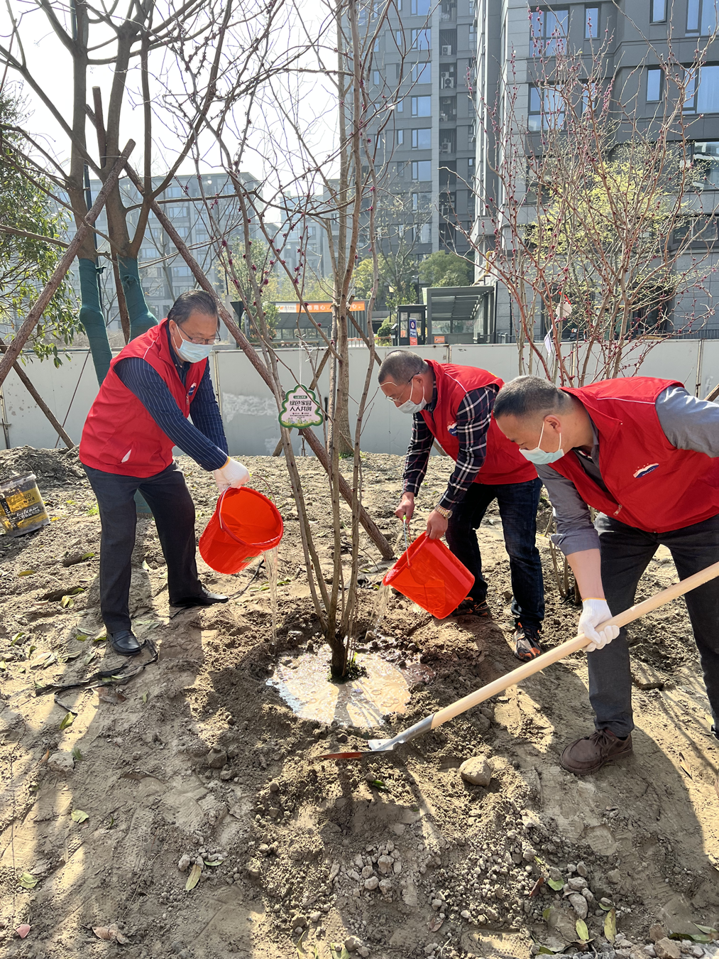 3月15日,公司党支部书记、董事长徐幼霖带领支部党员及公司骨干来到上城区坍桥头街道侧绿地,开展“绿色家园·人人共创”植树活动。