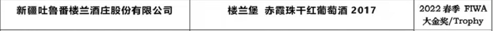 会长单位:【商源集团】楼兰堡斩获法国国际葡萄酒大赛大金奖中最高分暨Trophy!