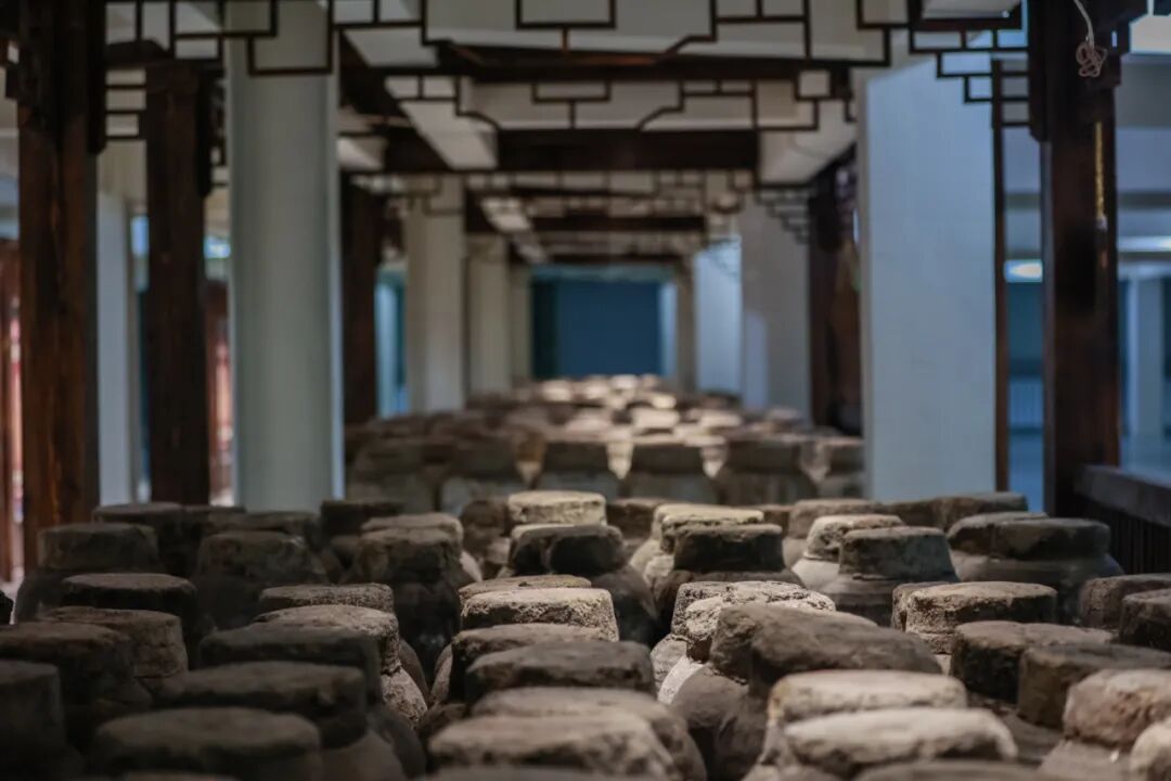 据了解,古越龙山中央酒库的前身是绍兴酒中央储备仓库,为1956年周恩来总理亲自批准拨款的名酒储藏库。经过60多年的发展,目前酒库占地达到了308亩,储酒量达到26万千升、约1100多万坛原酒。这一坛一坛酒挨着排列,可从广州出发沿京广线到北京一个来回,延绵八千里。古越龙山中央酒库为中国乃至全世界最大的黄酒酒库。
