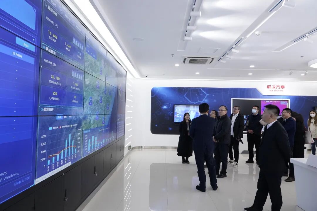 云商公司领导班子及事业部部长等相关部门负责人在图讯科技创始人及CEO王斌的带领下参观了图讯科技的办公大楼及展厅,观看了图讯科技的公司历程,公司安监产品的驾驶舱大屏。随后听取企业相关介绍。