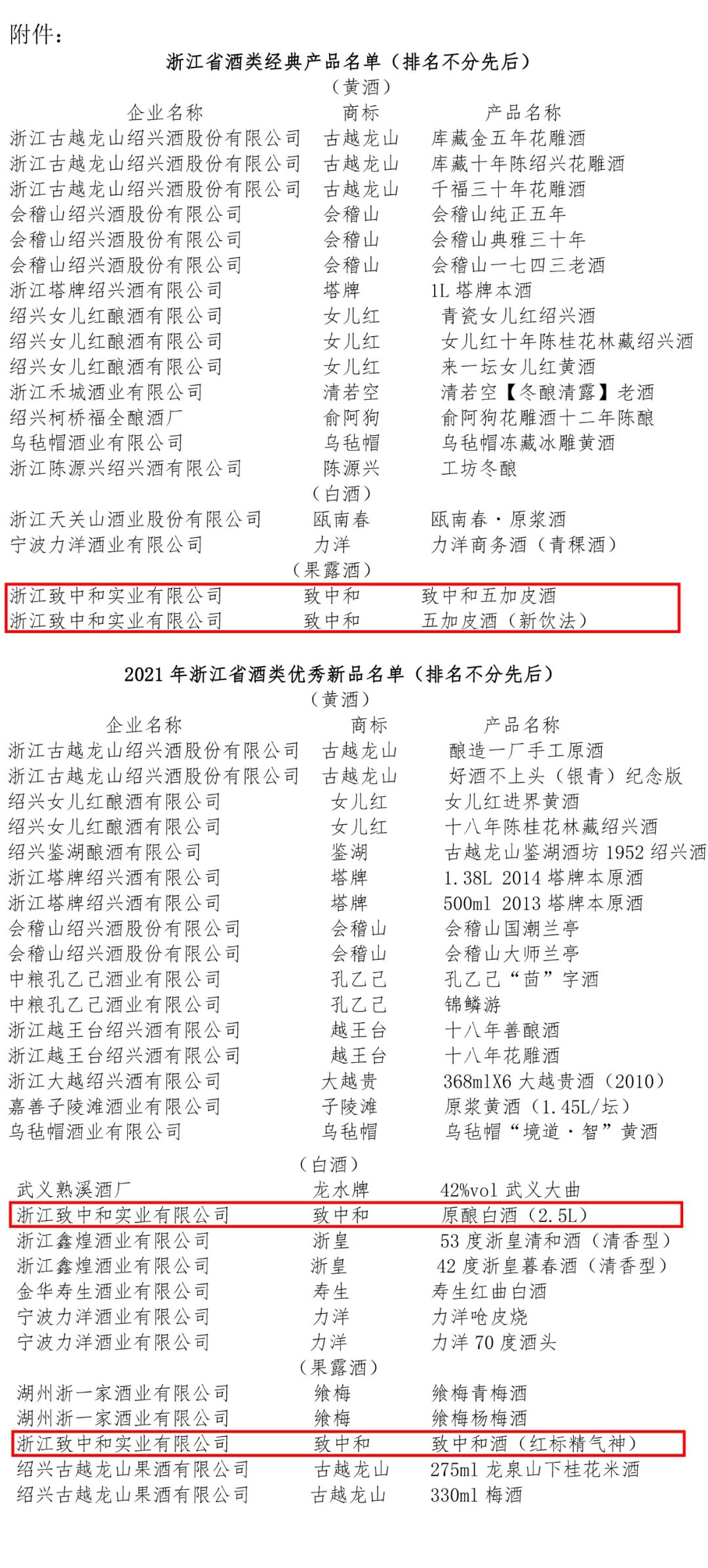 浙江省酒类经典产品(致中和产品)
