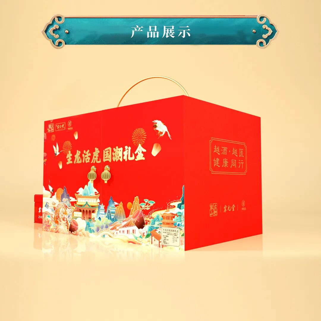 绍兴,这座行走的水乡博物馆,绵延山水百里,以跨界之名献给这座城市一份独一无二的伴手礼。时值国潮、元宇宙大热的当下,结合虎年吉祥主题,古越龙山x震元堂倾力打造新年生龙活虎国潮礼盒,集城市风情,展城市夙愿。