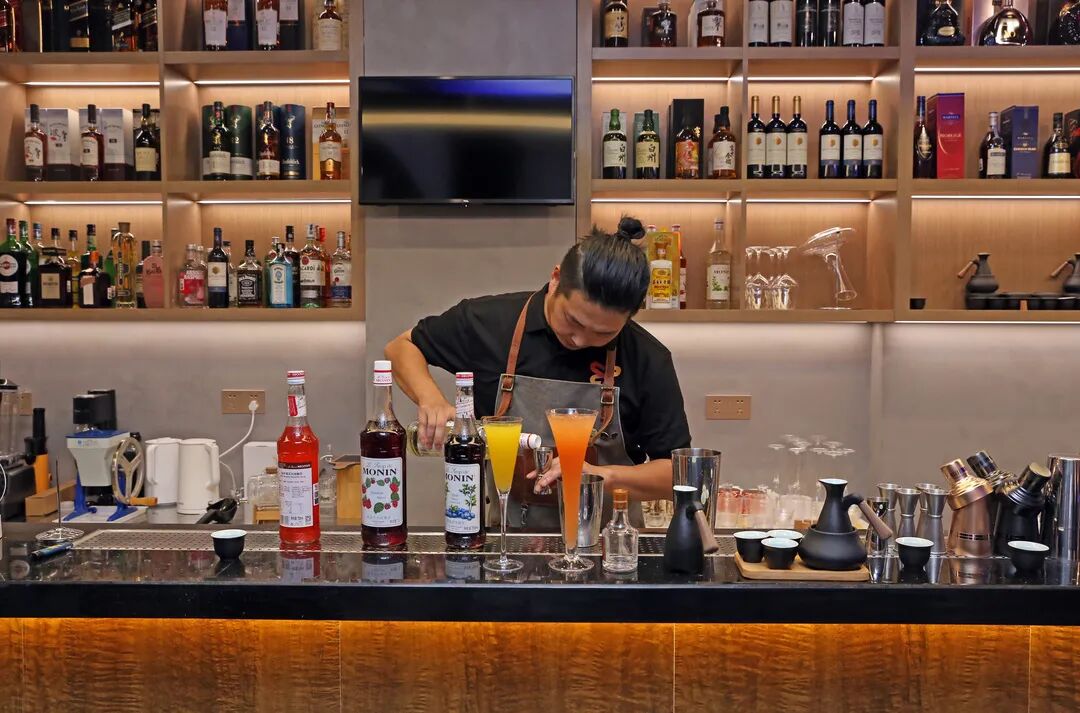 浙商糖酒湖墅南路体验店本次最突出的亮点应该是【WINE HOUSE糖酒屋】的一站式服务场景,首次采用了清吧模式。支持每一位用户在以零售价购买商品的同时还可以享受到沉浸式的饮酒氛围,同时还将支持分饮、调酒、存酒等业务。