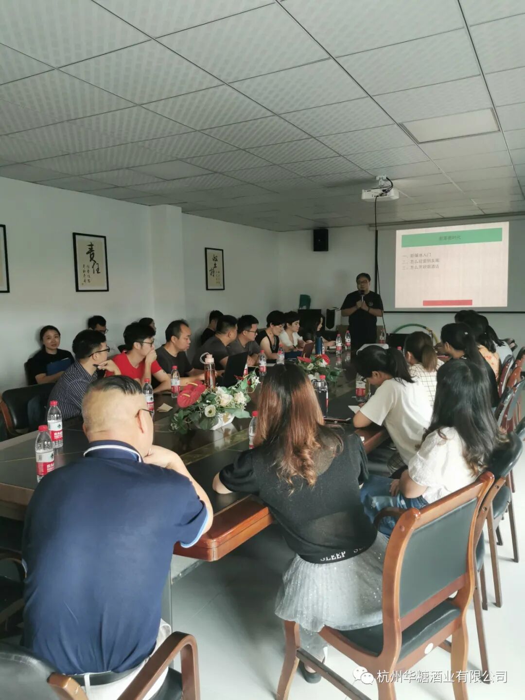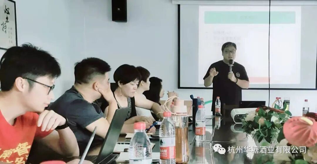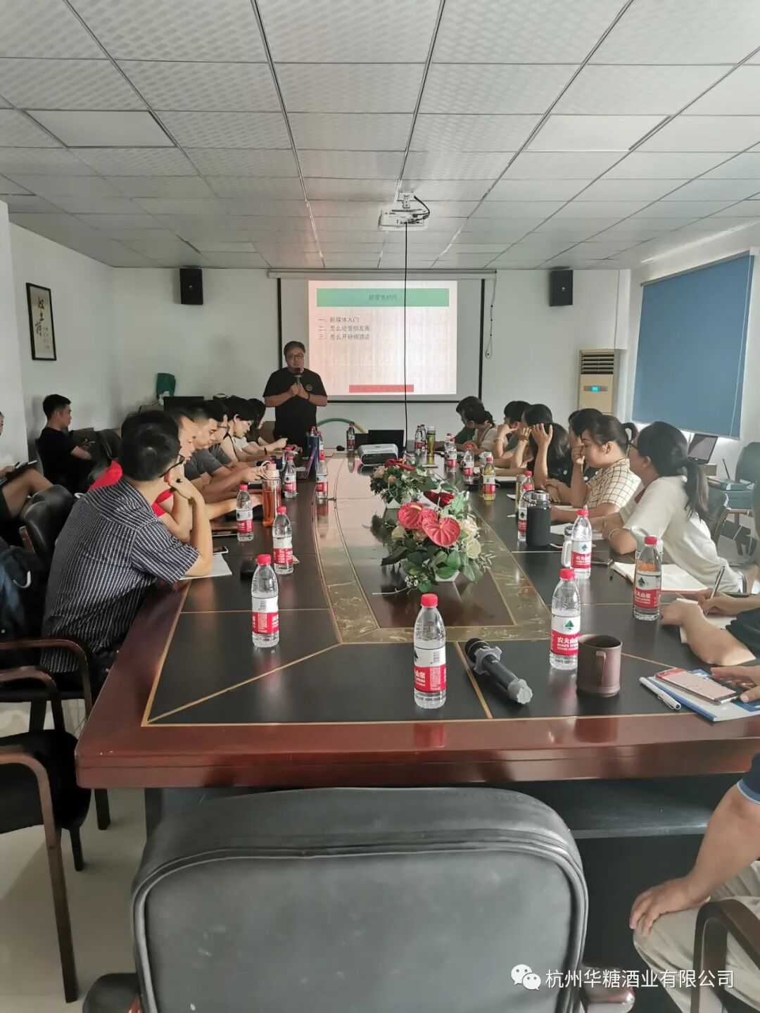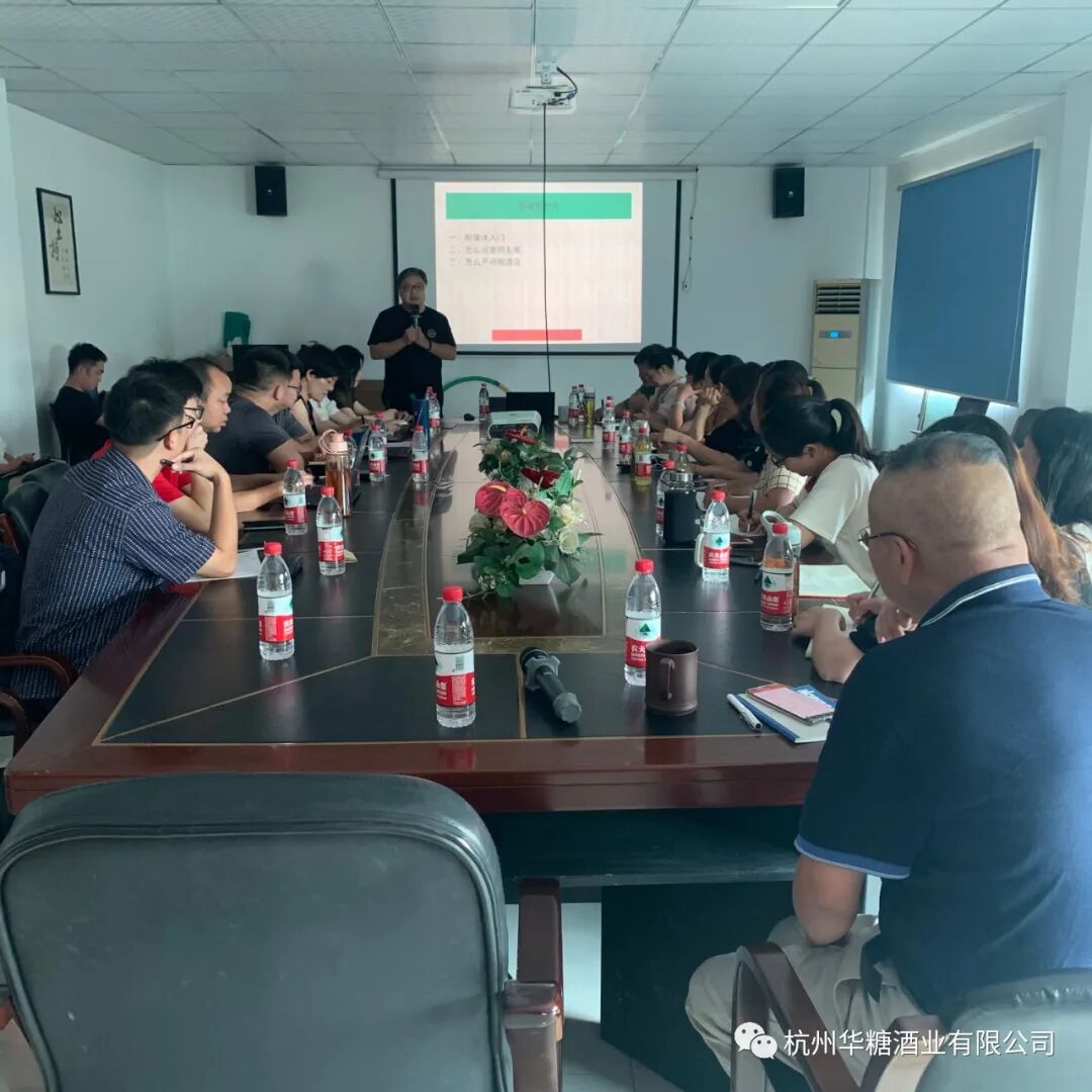 2021年8月21日下午13点30分,杭州华糖酒业有限公司全体业务经理、剑南春杭州郊县的业务经理们在朱总的带领下共同参加了由剑南春浙江办主任王军主讲的培训分享会议。