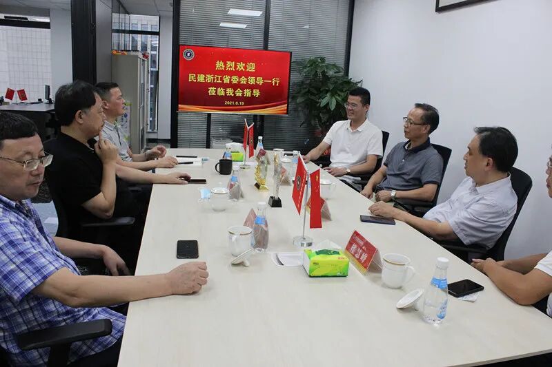 8月19日下午,浙江省政协常委、民建浙江省委会专职副主委计勇强,民建省委委员、省市场监督管理局二级巡视员杜久航,民建浙江省委会办公室主任朱惠忠,民建省直属九支部副主委楼慧峰一行莅临我会调研指导。