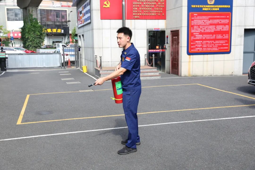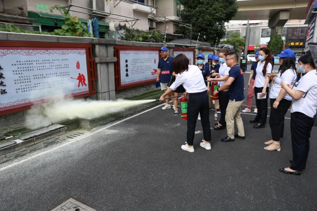 最后杨队长还为我们演示了如何使用灭火器,大家也纷纷参与体验熟悉操作。