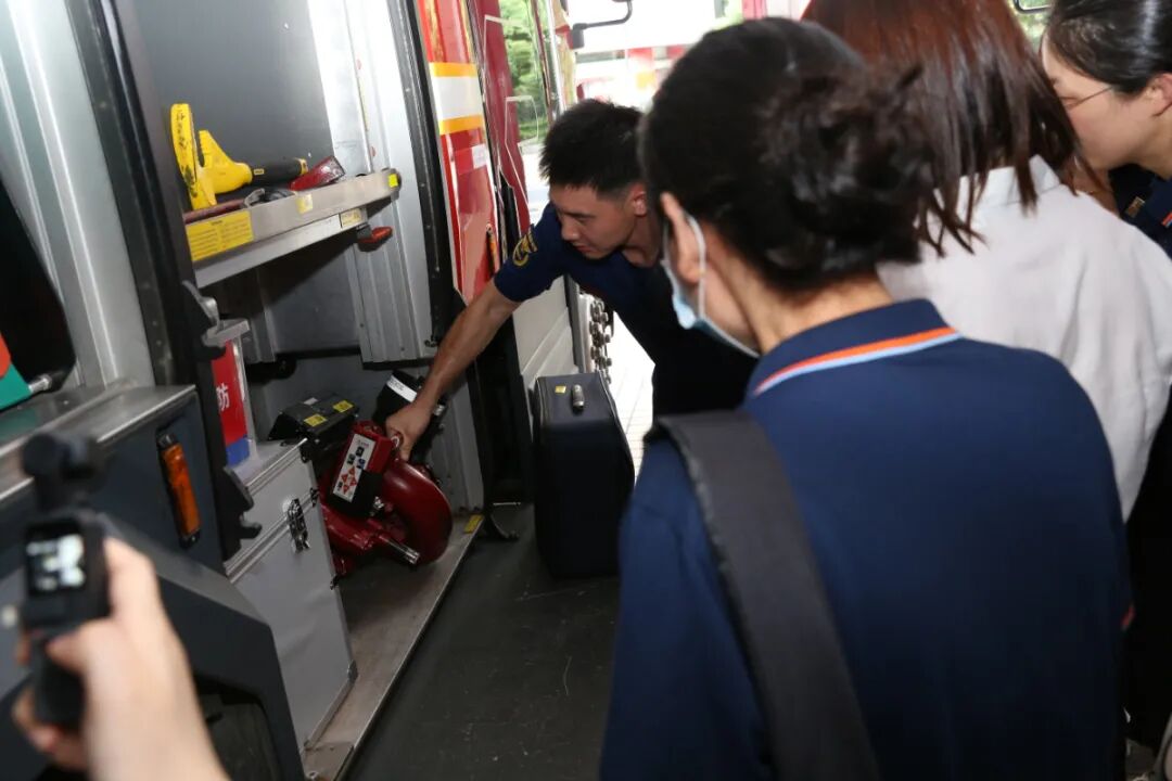 通过杨队长耐心的讲解,我们认识了各类专业消防用具,并且进行了现场演示的观摩。杨队长表示,朝晖消防中队经常在周末举行开放日活动,也非常欢迎大家带家人孩子来参观学习消防知识。