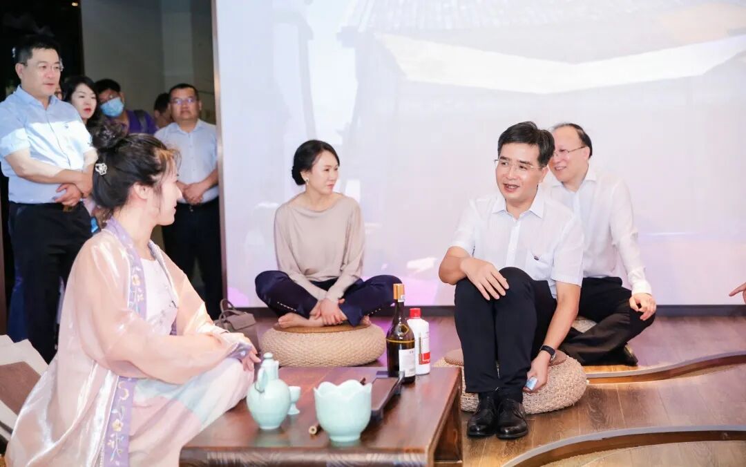 下午,季克良、高山一行赴物产中大茅台文化体验馆检查指导,参观了解文化体验馆融茅台品牌文化与南宋地域文化为一体的设计特色,体验“曲水流觞”沉浸式互动,领略运用数字化手段展现的茅台酿造工艺文化。