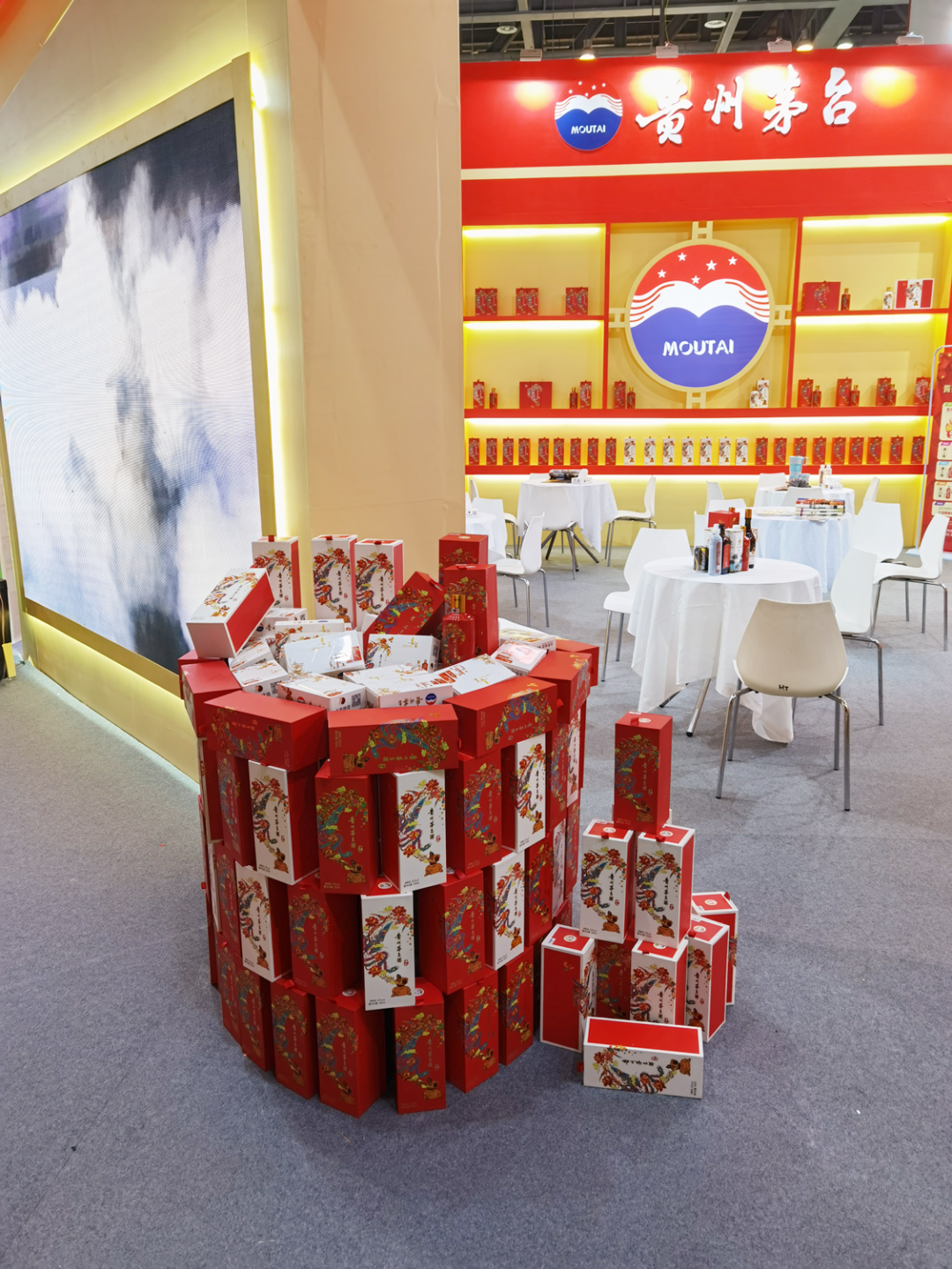 作为本次参展的主打产品,贵州茅台酒喜宴吸引了大量观展者的目光。