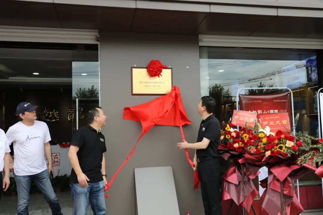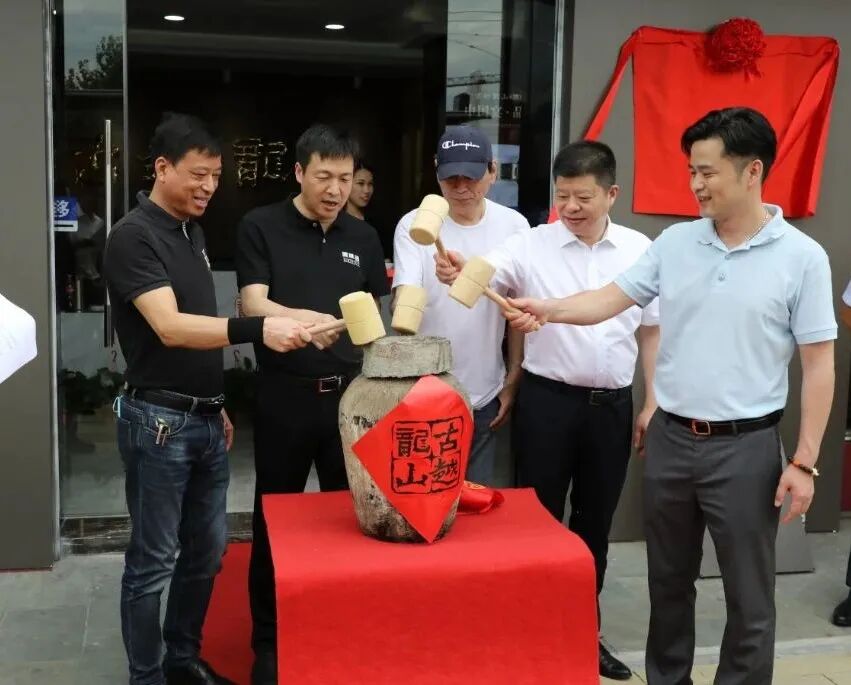 图为总经理徐东良与杭州分公司经理胡包海为古越龙山杭州旗舰店揭牌