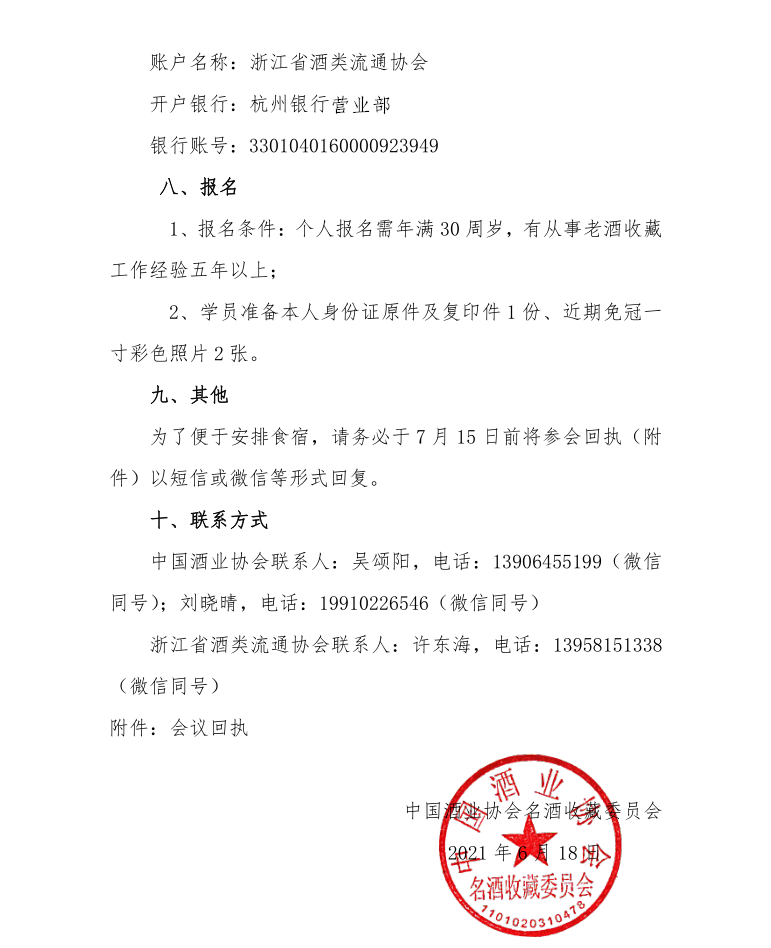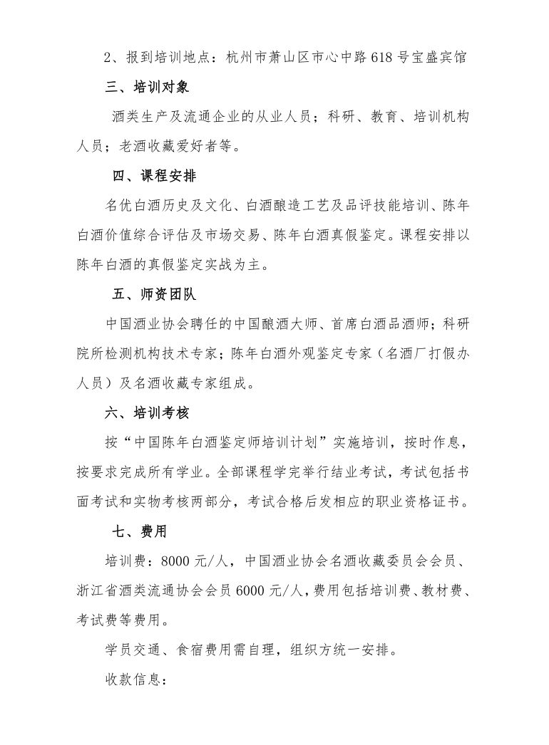 培训单位:浙江省酒类流通协会名酒收藏专业委员会