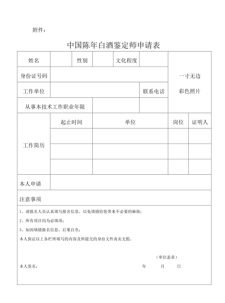 报名条件:个人报名需年满30周岁,有从事老酒收藏工作经验五年以上。学员准备本人身份证原件及复印件1份、近期免冠一寸彩色照片2张。