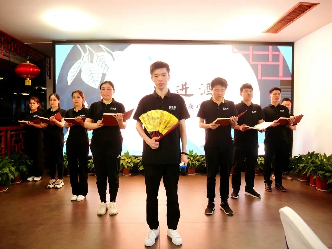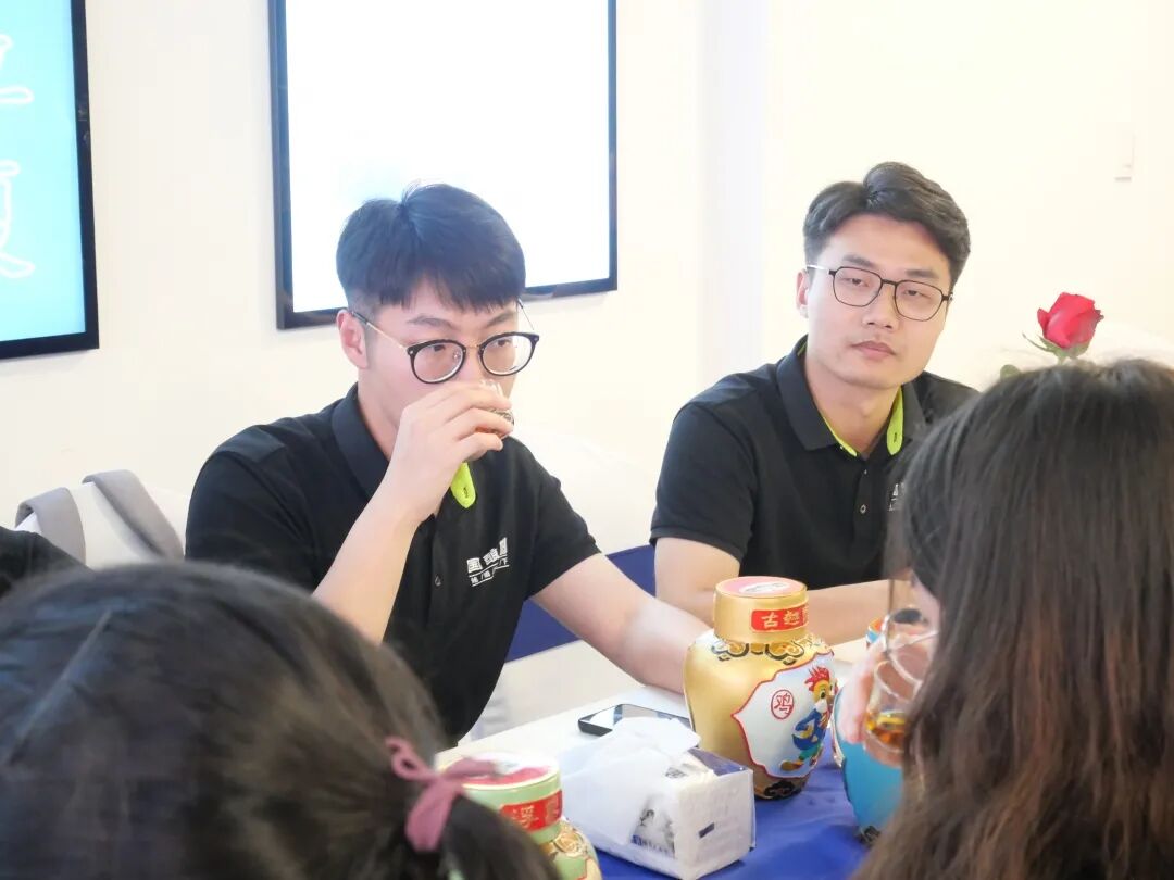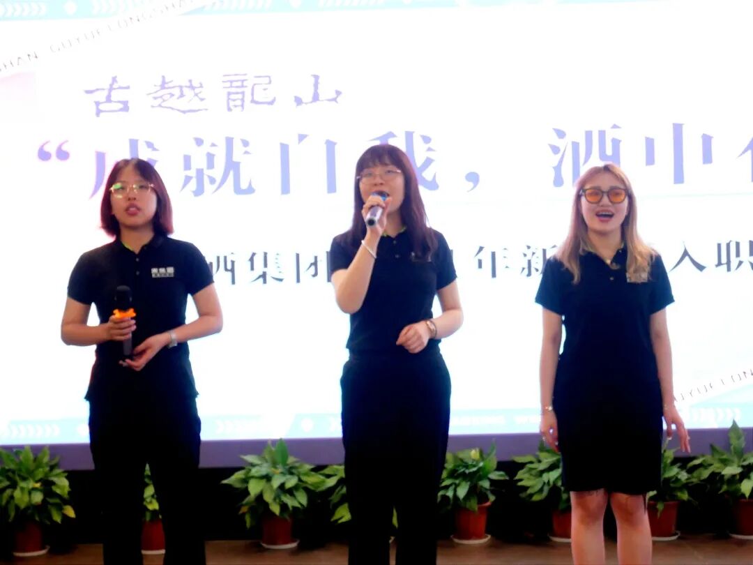 销售公司副总经理郭旭在晚宴上进行了黄酒品鉴知识分享,最后,新员工分组进行了汇报演出。