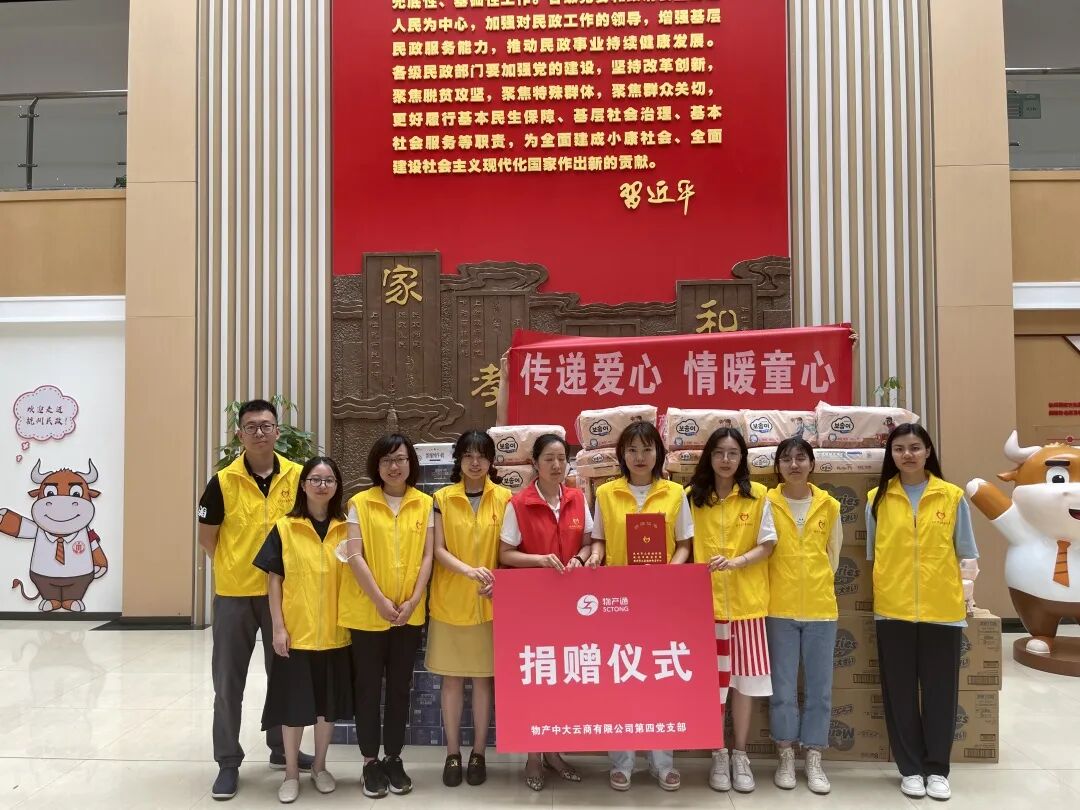此次根据福利院的需求,物产云商第四党支部共向杭州市儿童福利院捐赠100箱牛奶和50件尿不湿,为关爱残障儿童身心健康贡献绵薄之力。
