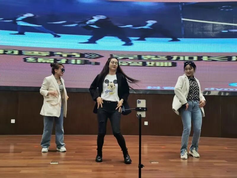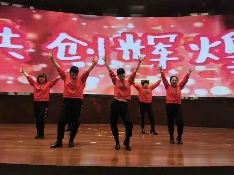 接着迎来我们最期待的员工文艺表演环节。财务后勤一群平均年龄在45岁左右仍热情奔放的女将以一场劲舞《好运来》开场。