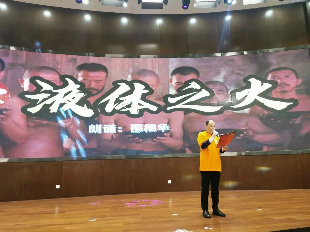 仓储部贡献的是诗歌朗诵《液体之火》,谁让咱的主业是卖酒呢?节目表演也离不开酒。
