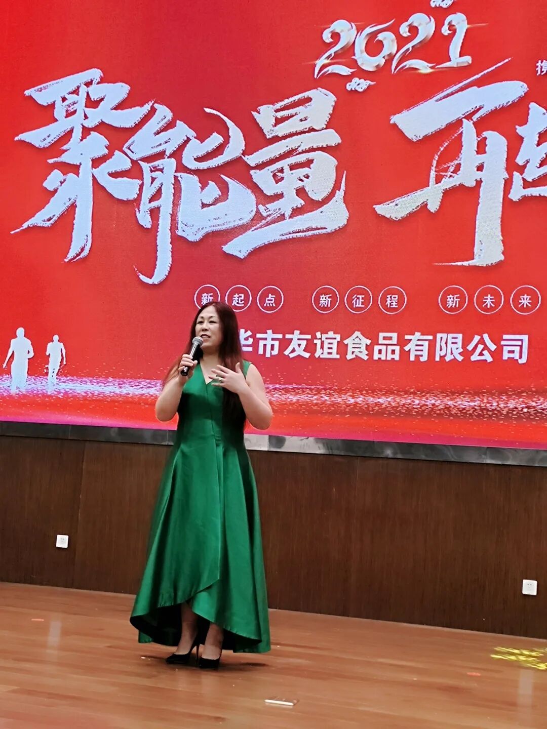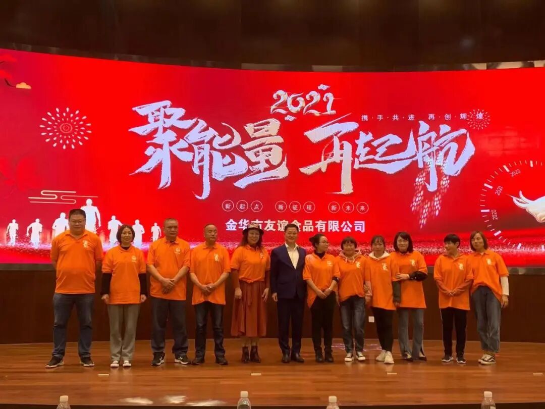 孙总致辞后主持人宣读了2020年度的优秀员工名单,优秀员工是金华市友谊食品有限公司的最高荣誉,一年一次,评给工作中表现卓越的佼佼者。公司领导给优秀员工颁奖后亲切合影留念。
