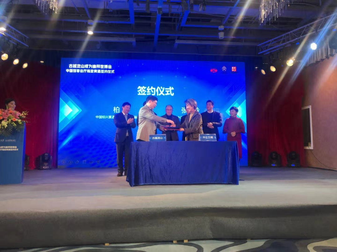 3月9日,古越龙山成为迪拜世博会中国馆宴会厅指定黄酒签约仪式在上海举行。
