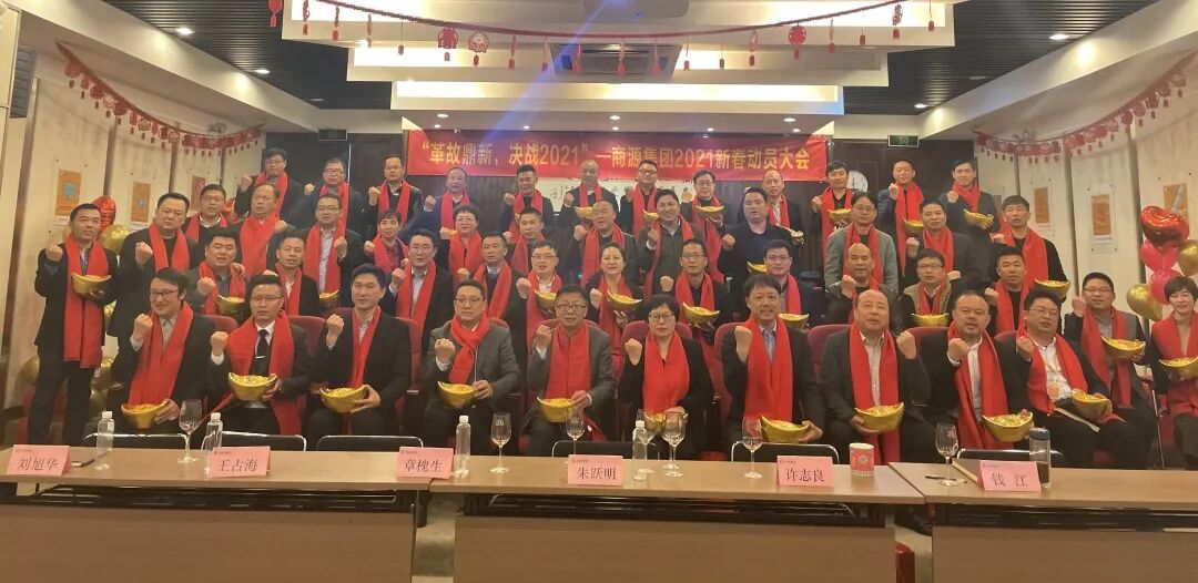 金鼠辞旧岁,金牛迎新春。2021年2月22日,商源集团“革故鼎新,决战2021”新春动员大会在集团12楼会议中心顺利召开。集团董事长兼总裁朱跃明、副董事长许志良、副总裁章槐生、副总裁钱江、副总裁兼董秘王占海、总裁助理许钢、总裁助理刘旭华等集团高管,各品牌总经理和负责人、久加久新零售事业部副总经理及战区总经理、集团职能部门负责人等共计51人出席会议。本次动员会共分为主题分享及誓师仪式两大环节,会议由商学院缪丽华主持。