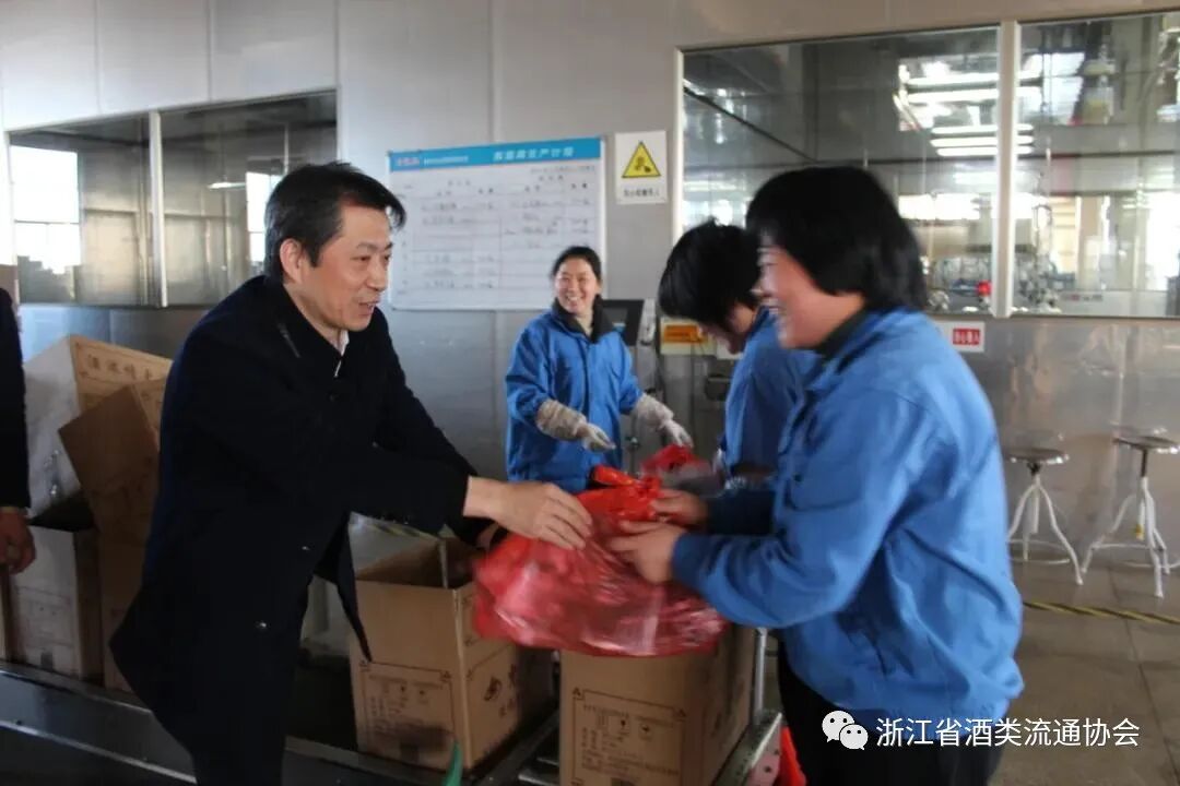 公司领导柏宏来到绍兴鉴湖酿酒有限公司,看望慰问鉴湖一线加班职工。