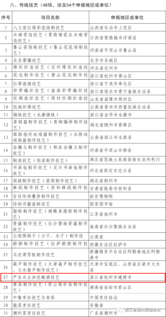 据悉,本次国家级非遗申报共有943个项目参与评审,经过严格筛选,最终包括“严东关五加皮酿酒技艺”在内的198个新增项目脱颖而出,成功入选。