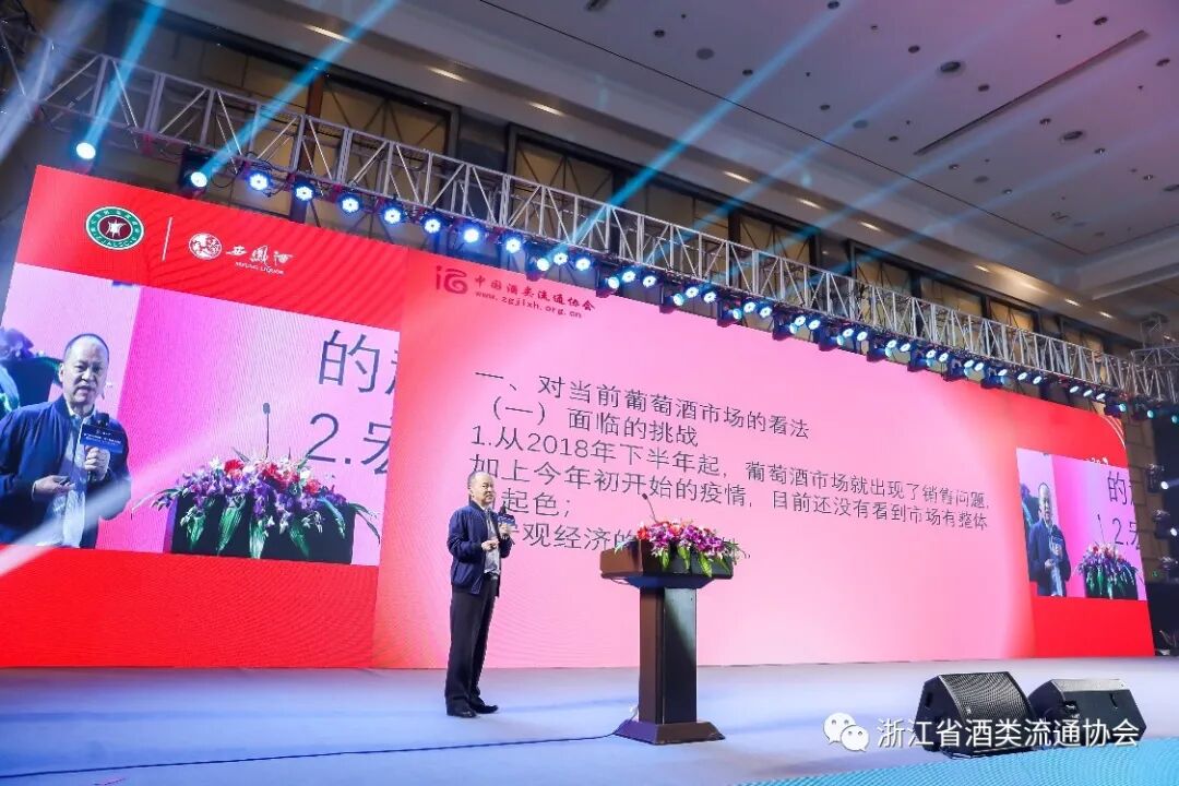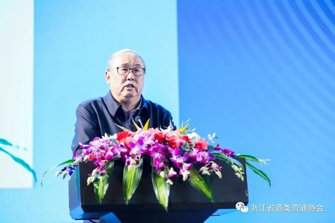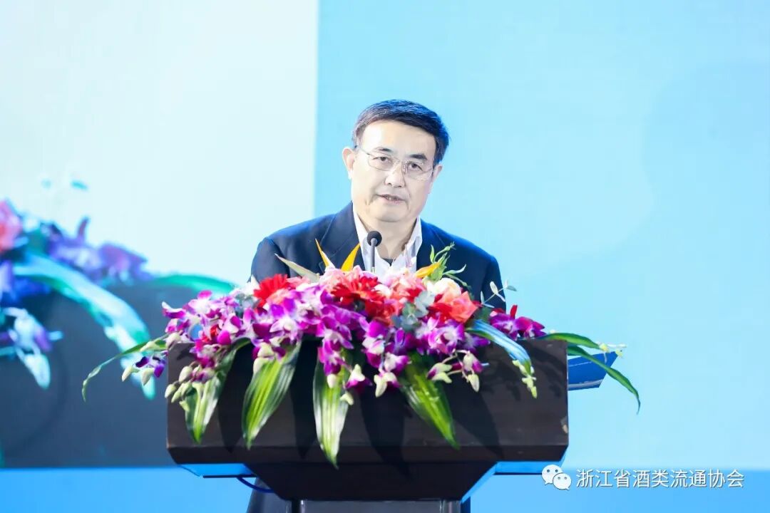 稍后,浙江省第十二届人大常委会副主任、浙商发展研究院院长、浙江省酒类流通协会名誉会长王永昌为大会致辞。王永昌主任对当前国内政策进行了解读,并就如何提升酒业发展新动能提出了自己的看法。他讲到,当前正值五中全会闭幕不久,五中全会对中国当前和未来的发展思路、重点、规划作出了安排,中国经济进入全新的发展阶段。经济内循环为主、内外双循环是中国当下及未来发展的大战略。