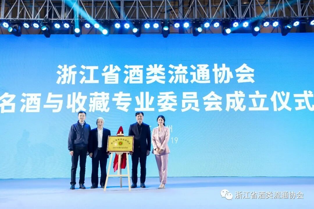 大会成立名酒与收藏专委会,中国酒类流通协会常务副会长刘员,浙江省商务厅行业商协会党委书记、法规处处长杨威,浙江省酒类流通协会会长朱跃明,浙江省酒类流通协会副会长、名酒与收藏专委会会长赵琴芳,共同为成立仪式揭牌。该专委会的成立旨在对名酒与年份酒的收藏市场给予行业规范,规范推动名酒行业的持续健康发展。