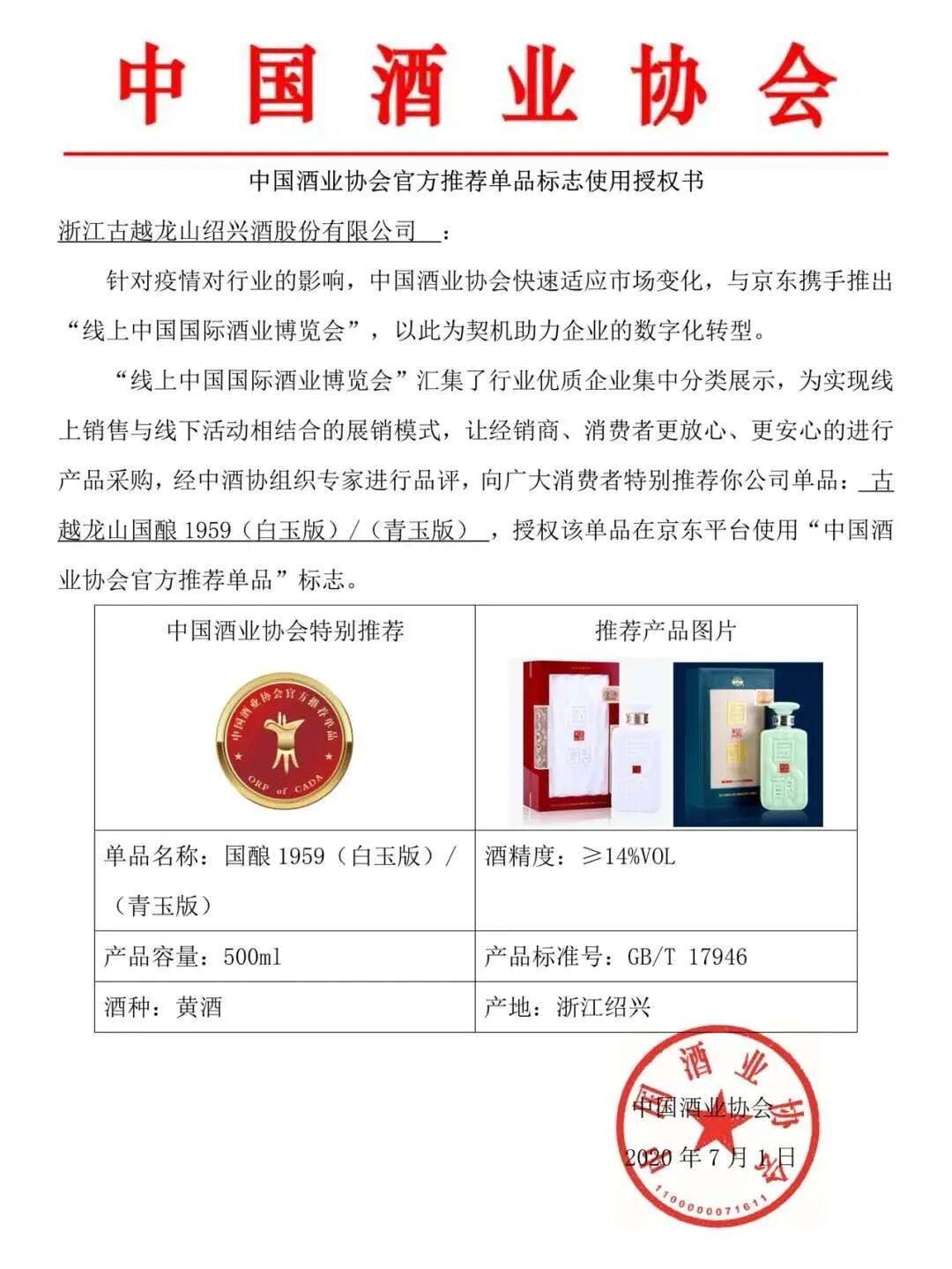 副会长单位:【古越龙山】国酿古越龙山1959再获殊荣:中国酒业青云奖年度高端产品奖