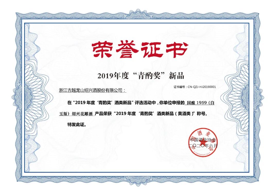继获得2019中国酒业“青酌奖”和中国酒业协会推荐的官方推荐单品后,10月11日在济南举行的中国酒业青云奖颁奖典礼上,国酿古越龙山1959又获大奖,荣获年度高端产品奖。