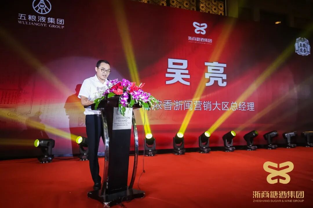 五粮浓香浙闽大区总经理吴亮、五粮液浙江战区副总经理黄海为本场答谢会先后发表开场致辞。