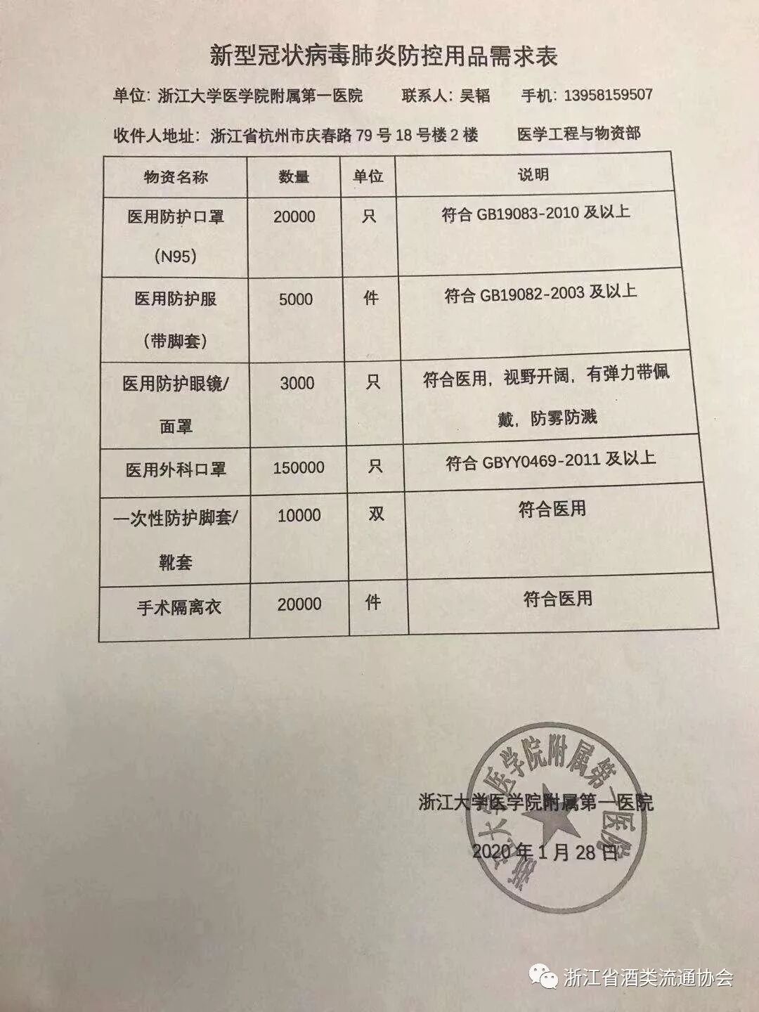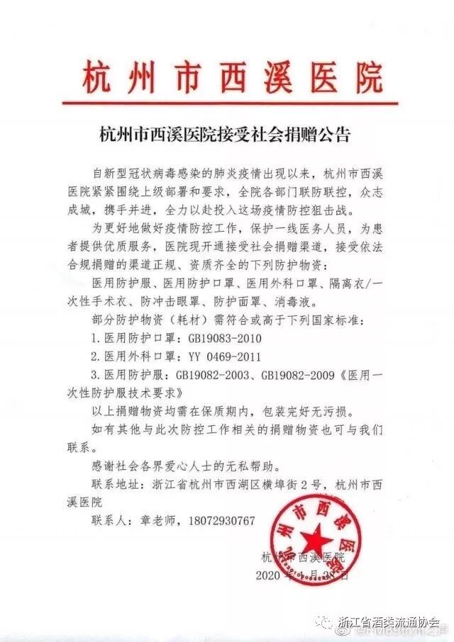 浙江省酒类流通协会关于号召对疫情爱心防控捐赠的倡议书