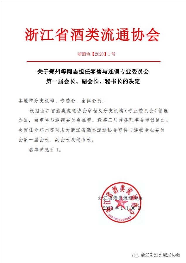 1月10日,浙江省酒类流通协会零售与连锁专业委员会授牌仪式在杭州洲际酒店举行召开。我会会长朱跃明,执行会长许国军,常务副会长谢士云,副会长徐肖纲,副会长兼秘书长许东海等领导出席参加,为零售与连锁专业委员会授牌。
