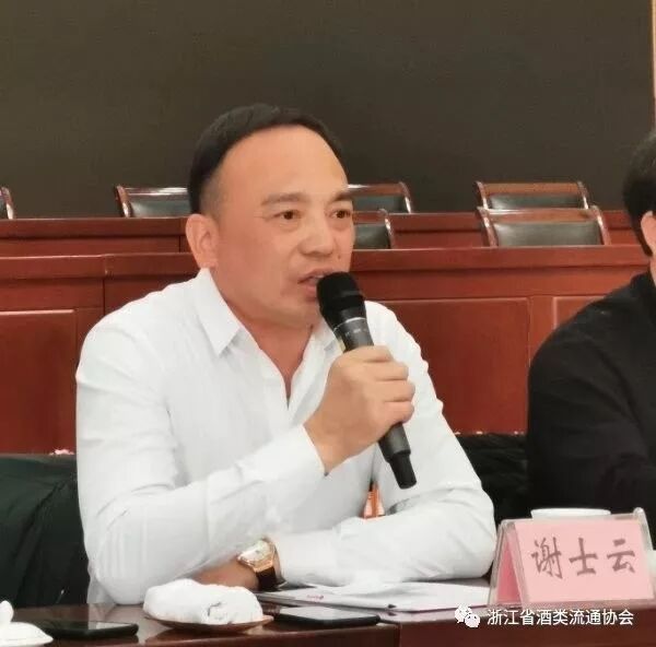 常务副会长谢士云代表汾酒优秀经销商汇报浙江市场销售情况。