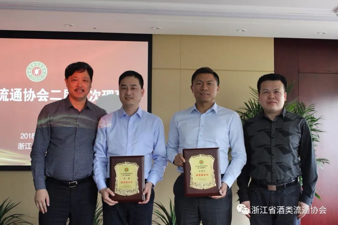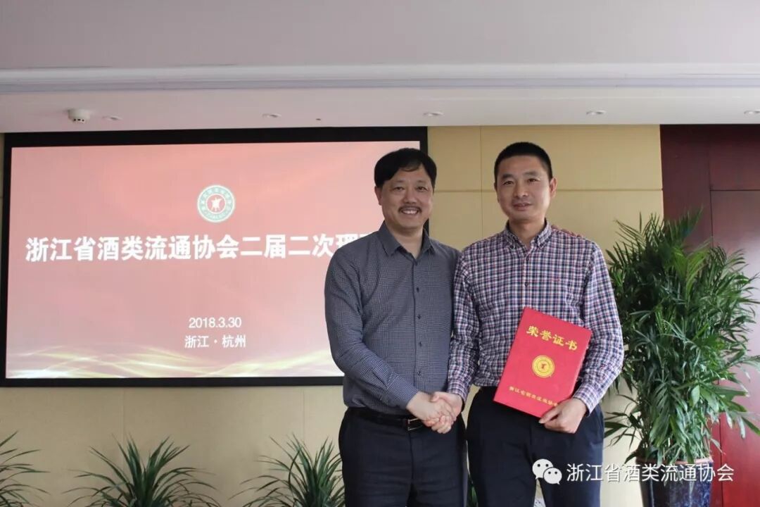 会上,对新增补浙商糖酒集团浙江酒业有限公司董事长许国军、宁波新江厦股份有限公司总经理张耀颁发常务副会长铜牌。