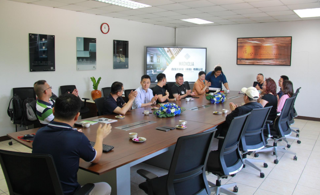 为了响应上海市政府关于推动企业走出国门、拓展国际市场的号召,上海市家具行业协会以全球视野和前瞻性思考,2023年初就制定了“品牌之旅-泰国行”工作计划,并在2023年8月的世界家具年会上,上海家协秘书长李霞通过中国家具协会屠理事长与泰国家具协会会长进行了接洽,为上海家协泰国行做好了充分的准备。 经过稠密策划,一支由10人组成的“2023上海家协品牌之旅——泰国行”学习考察团正式成立,于2023年11月20日至25日前往泰国曼谷进行考察。 考察团由上海家协李霞秘书长带队,会员企业诺梵、朴美、金地、雅特兰、澳瑞等家具企业的领导组成,目的之一是向迁移泰国三年并成功落地泰国的白玉兰橱柜沈忠民董事长学习取经,同时深入了解泰国家具行业的市场需求、技术动态、产业链情况等,以及与泰国家具企业进行面对面的交流和深度合作探讨。 抵达曼谷当晚,泰国家协副会长Mike晚9点来到上海家协入驻的酒店,与上海家协李霞秘书长及考察团成员进行了深入的沟通,对接了第二天及第三天需要走访的泰国家具企业及相关的拜访事宜。 在对接中,Mike详细介绍了每家企业的特点、主营业务和优势,以及与上海家协成员企业之间的潜在合作机会。他希望通过此次考察团的交流,能够推动上海家具企业与泰国家具企业之间的合作,实现互利共赢。上海家协考察团的企业代表们表示对此次考察充满了期待。1、白玉兰厨房家具