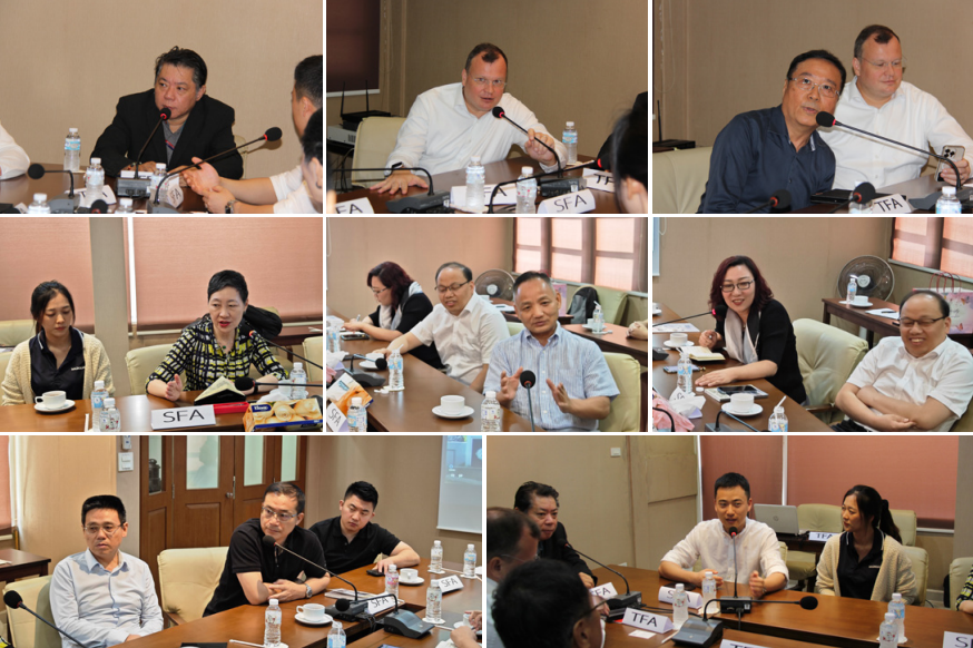 在2023年的上海家协品牌之旅——泰国行中,考察团队于第二天上午来到了泰国家具协会。泰国家具协会会长、泰国木材协会主席、利成发实业有限公司总经理JIRAWAT ANGKIJNGAMWONG先生、泰国家协顾问Mr. FRANZ CHRISTOPH HAMPEL先生与上海家协李霞秘书长带领的考察团队热情地进行了交流。 澳瑞家具总经理高玛峰担任了交流的翻译工作。泰国家具协会会长JIRAWAT ANGKIJNGAMWONG先生向考察团队介绍了泰国家具行业的基本情况,包括市场发展状态以及中国家具企业在泰国市场的表现。他强调了中国家具企业在进入泰国市场时,与当地家具企业建立合作关系的重要性,有利于未来的发展。 在交流过程中,上海家协考察团队针对所关心的问题向泰国家具协会会长进行了询问,并得到了详细的解答。JIRAWAT ANGKIJNGAMWONG先生还分享了泰国家具行业的优势以及未来发展趋势,为上海家协考察团队提供了宝贵的市场洞察。 上海家协李霞秘书长带来了未能跟随考察团一起来泰国的上海博华国际展览有限公司的视频介绍,并推荐泰国家协与之开展交流合作。