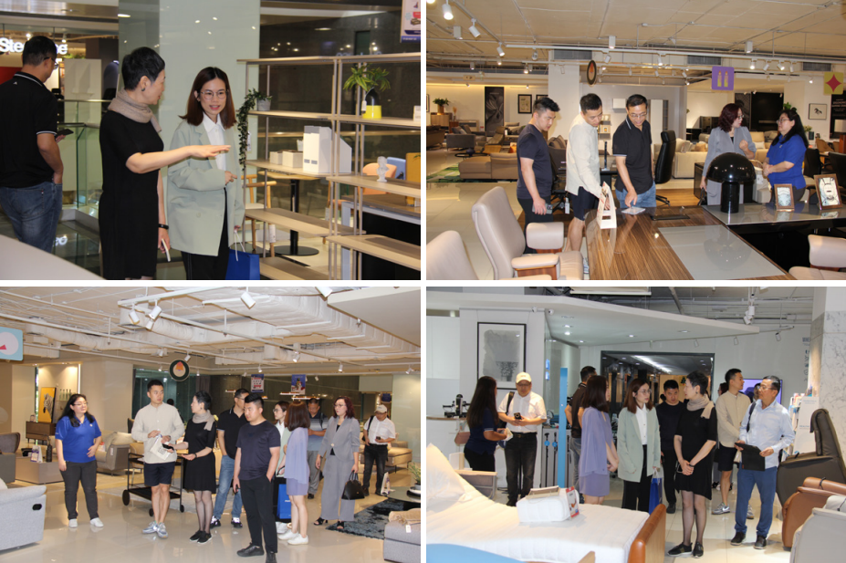 在第三天的中午,"上海家协品牌之旅——泰国行"团队来到了由中国人创立的,虽然成立时间不长,但在泰国华人中享有盛名的家具公司——鸿业家具有限公司。公司的董事长谢锐热情地接待了上海家协的考察团。 在亲切的交流中,谢总分享了他来到泰国创办家具公司的历程和经营状况。他表示,鸿业家具一直以来都是泰国家具装修行业的领军品牌,致力于串联中泰资源进行复合重组,为来泰国的华人企业提供高精准的办公布置解决方案。考察团成员们与谢总就鸿业家具在泰国的经营模式进行了深入的探讨和交流。 考察团成员们对鸿业家具的发展历程和经营模式表示了浓厚的兴趣,大家认为鸿业家具的成功经验可以为中泰两国家具行业的发展提供有益的借鉴。大家还就未来可能的合作进行了初步的探讨,共同期待未来能够在中泰两国的家具行业中开展更加深入的合作与交流。