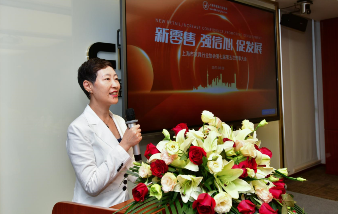 本次理事会以“新零售、强信心、促发展”为主题,上海市家具行业协会李霞秘书长主持大会。会上,邀请了上海喜盈门副总经理杨蕾、小红书商业化家居负责人青青两位嘉宾为大家做主题分享。