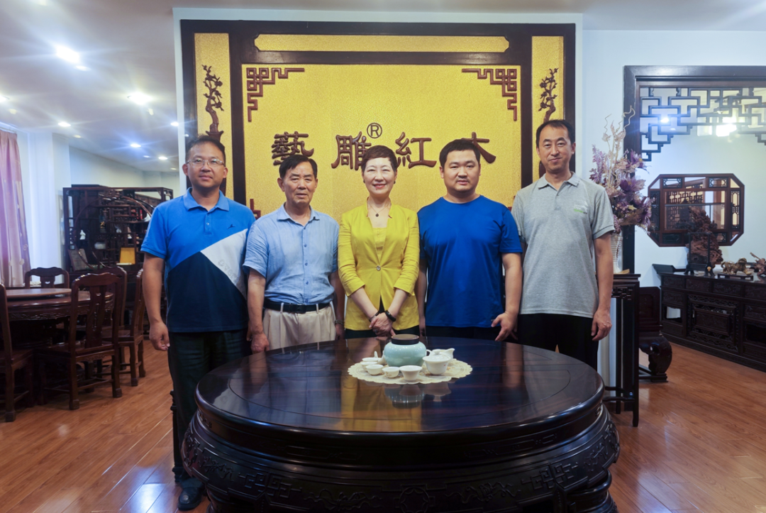 2023年7月7日上午,上海市家具行业协会一行三人在李霞秘书长的带领下来到位于闵行区的上海艺雕红木家具有限公司进行走访交流,了解红木企业的生产经营状况和发展需求,传递政策及行业信息。艺雕红木董事长施鹤兵,总经理施钰名热情接待上海家协一行。