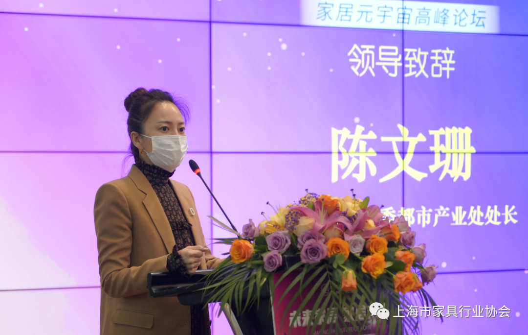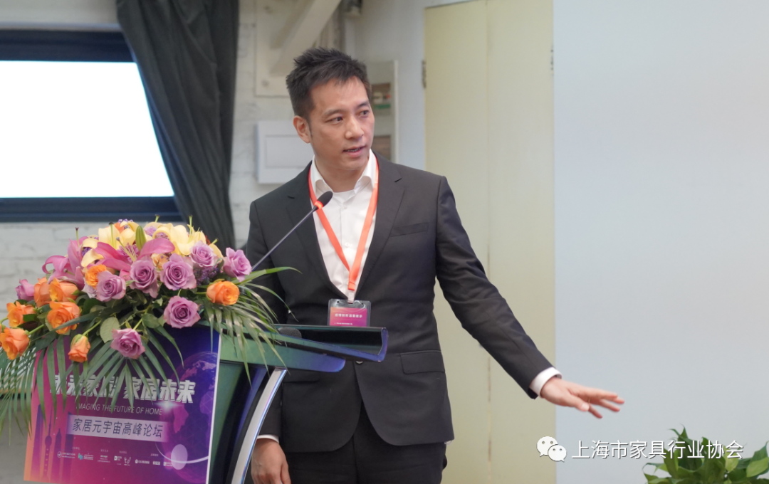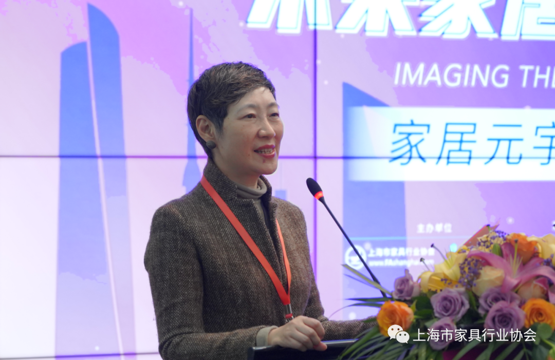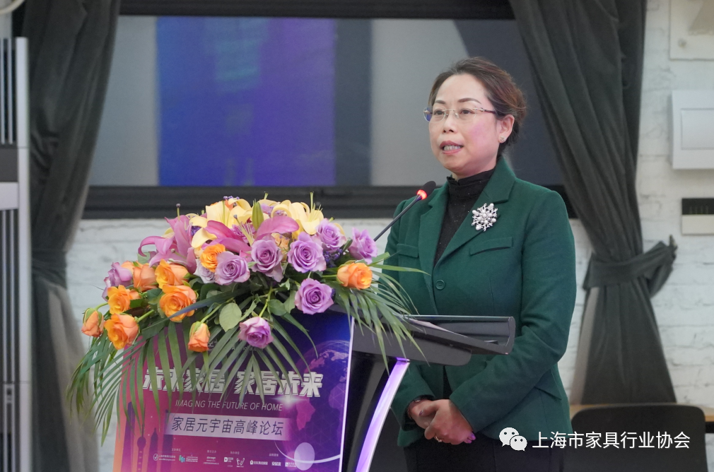 上海市经信委都市产业处处长陈文珊为本次论坛致辞。她认为在科技及数字化快速发展的当下,上海市家具行业协会组织策划这次“家居元宇宙论坛”是非常及时和必要的。她指出,在首届世界设计之都大会上“元宇宙+时尚”的新概念、新产品的亮相,给大家带来了数字技术赋能时尚的体验。她希望上海家具企业接受新思想、新观念,走在时尚前沿。同时,陈文珊介绍了上海时尚消费品高质量发展行动计划中的“时尚八品”:服饰尚品、化妆美品、精致食品、运动优品、智能用品、生活佳品、工艺精品、数字潮品,并要求上海家具企业从智能用品、生活佳品方面发力,推动企业高质量发展。最后,她介绍了市政府以技术推动产业升级,以需求驱动核心技术创新,以设计链接新兴产业发展思路。
