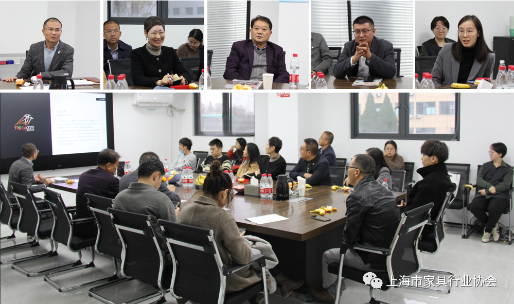 上海市家具行业协会李霞秘书长向海安家具产业基地领导以及5家企业负责人介绍了上海家协近年来开展的各项工作,并着重介绍了上海市政府对家具产业的定位。同时,带来了上海市政府对国际、国内的行业头部企业的职能总部落户上海的政策信息,在场企业深受鼓舞。