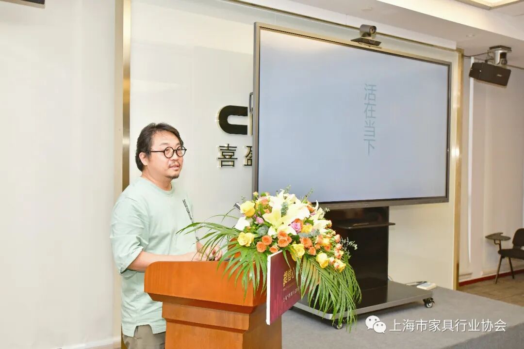 上海家协设计专业委员会主任单位,[多少]品牌创始人侯正光,向大家汇报了设计专委会开展的工作,同时还为企业分享了设计理念和设计思想。