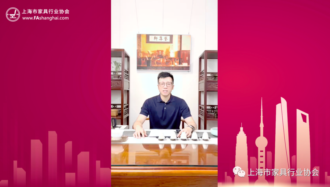 上海家协红木专业委员会主任单位,艺尊轩总经理包浩乾,由于未能到场,特录制视频向大会汇报了红木专委会上半年开展的各项工作。