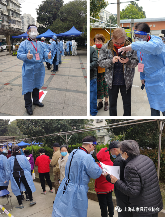 同时,文信家具的领导、党员及预备党员们积极报名参加园区的志愿者,并自发组织起两支4人的队伍,参与到不同的防疫抗疫核酸检测地点志愿者服务中。