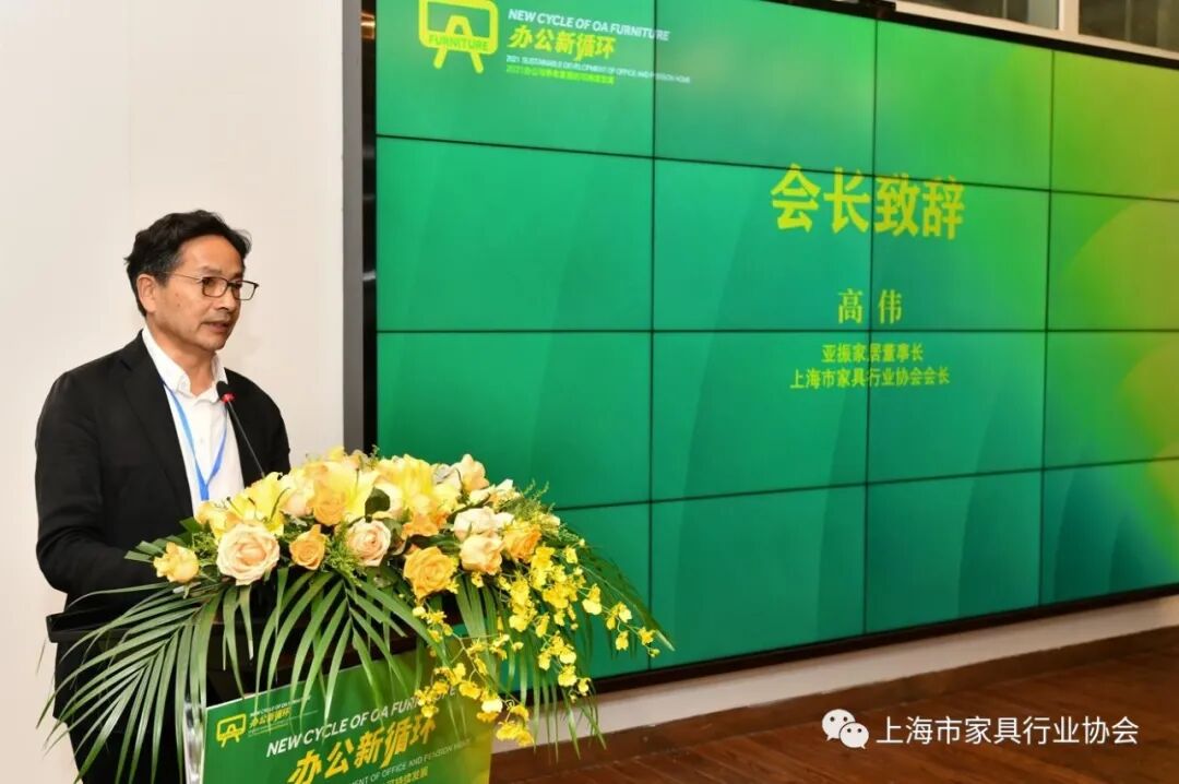 上海市家具行业协会会长、亚振家居董事长高伟在致辞中认为上海家协组织这次办公和养老家居的可持作发展论坛具有十分重要的意义和价值。作为与人民美好生活息息相关的家具行业的经营者,应思考和执行可持续发展战略。我们上海家具人要从新材料,新技术,新领域去寻找可持续发展的新路径。不断学习,提高企业研发能力和应用能力,把握时代赋予我们的机遇和使命,努力当下,造福后待。