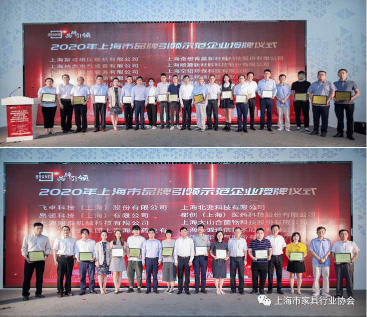 9月3日,由上海市经济和信息化委员会、上海市工业经济联合会、上海市经济团体联合会共同指导,上海市质量协会主办的“2020年上海市品牌引领示范企业授牌仪式”在G60科创云廊体验馆2楼举行。上海家具行业企业:上海老周红木家具有限公司、上海港大家居用品有限公司、上海发力电子箱柜有限公司3家企业荣获“2020年上海市品牌引领示范企业”称号,受邀出席授牌仪式并上台接受市领导授牌。